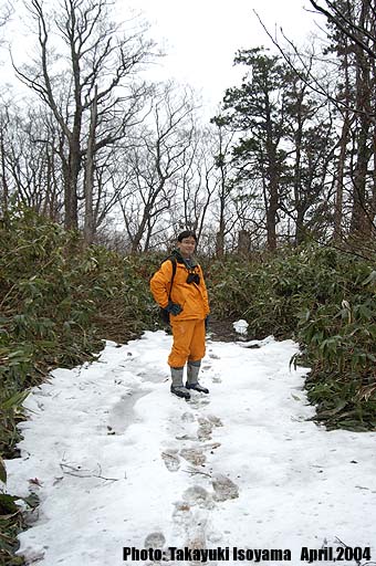 | 沢田 毅(さわだ たけし) 1969年・東京生まれ 1991年秋・翌年(申年)の年賀状用の写真を撮影する為、青森県下北郡脇野沢村に行ったことがきっかけとなり、以来、毎年2〜3回程度脇野沢村に出向くことになる。 最近、おなかが気になってきたので(○年太りの前兆?)、'03年9月からスポーツクラブに通い減量を始める。 年末には3〜4キロ減って、BMIも22を切ったので、今後はリバウンドに気をつけつつ、もう少し筋肉を鍛えようと思っている今日この頃。 右の写真は、2004年の4月、季節外れの寒波による雪の中での撮影です。(この頃、青森市内では桜が満開でした) |
